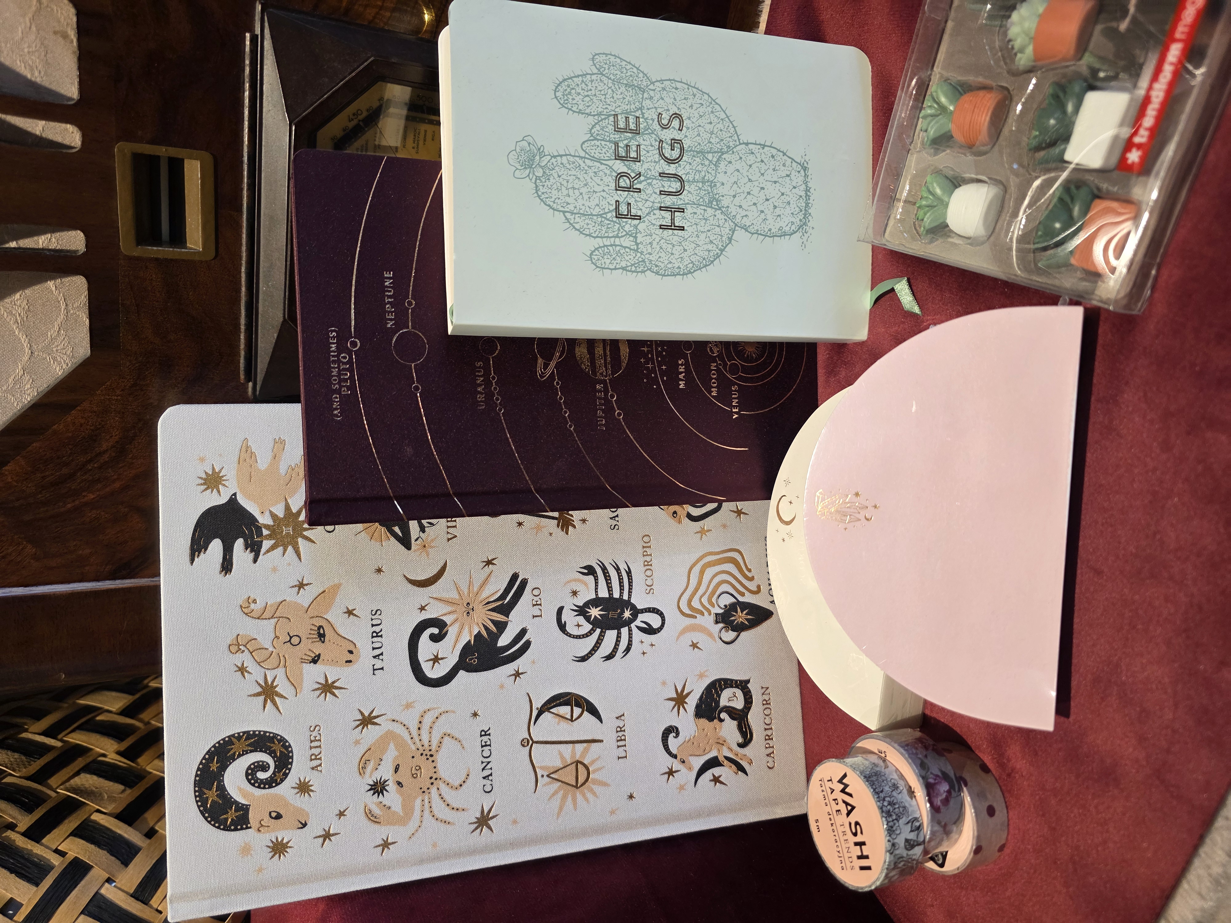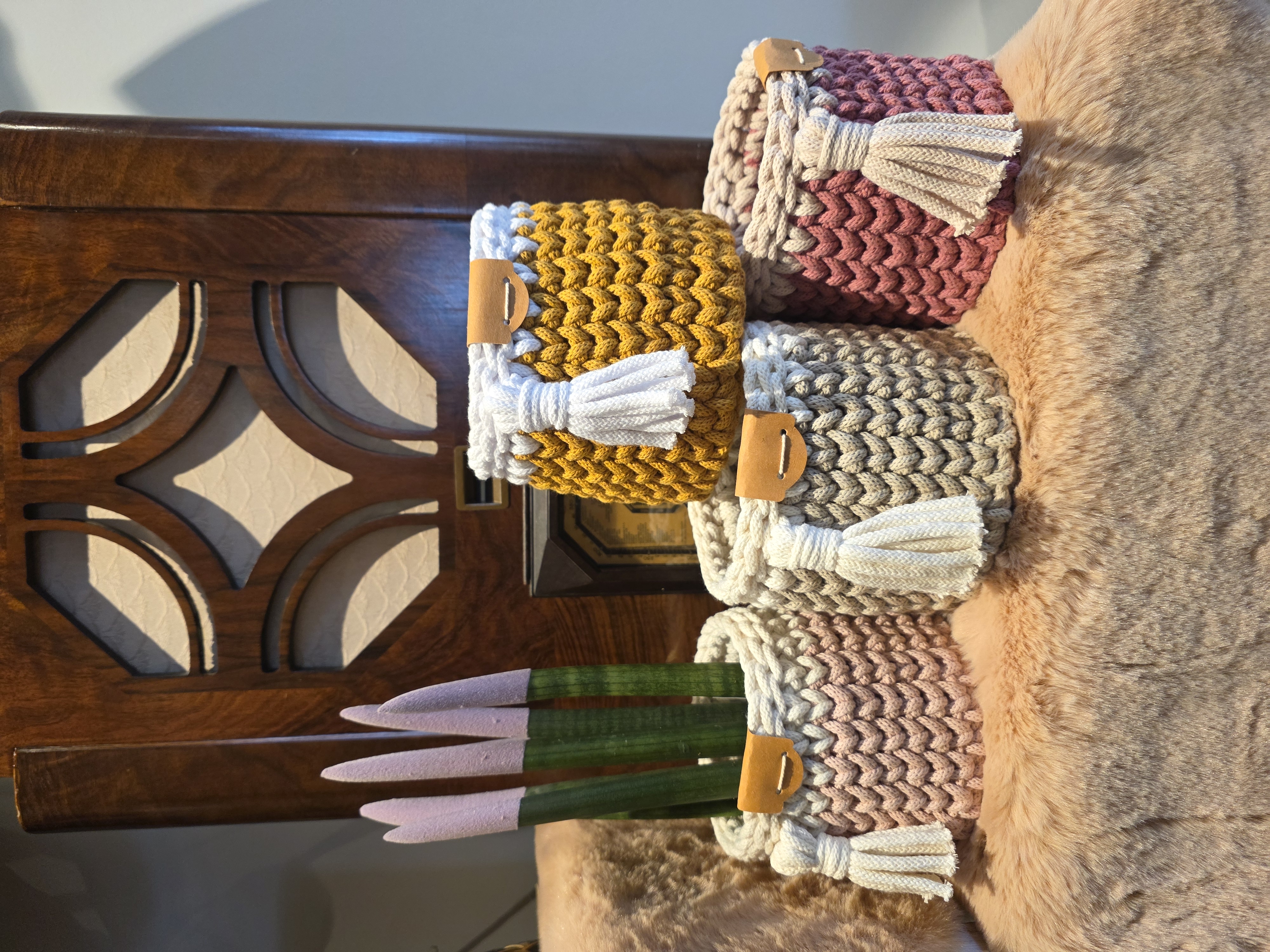 Nous proposons également des paniers en crochet faits main, parfaits aussi bien comme cache-pots que comme vide-poches, des jeux de société ainsi que des articles de papeterie.